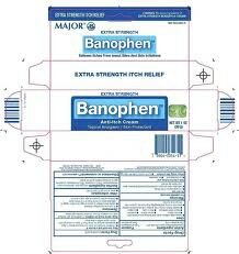 - Topical analgesic/skin protectant, Histamine Blocking Itch Relief, BANOPHEN® Extra Strength topical cream stops your itch at the source by blocking the histamine that causes itch, Topical analgesic (Diphenhydramine HCI) Skin protectant (Zinc acetate)