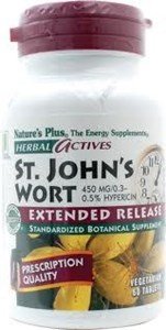 St John's Wort Extract 450mg Time Release by Nature's Plus 60 Sustained Release Tablet St John's Wort Extract 450mg Time Release 60 Sustained Release Tablet Nature's Plus Herbal Actives St. John's Wort 450 mg extract is uniformly standardized to a minimum of 0.3 '0.5 (1.35 mg'2.25 mg) hypericin to guarantee that each and every tablet provides consistent potency and activity. Each extended-release tablet providing the greatest concentration of active botanical principles maximizes the synergistic benefits of the whole flower which naturally contains flavonoids tannins xanthrones monoterpenes and phytosterols. This product is hypo-allergenic. This product is gluten free. This product is vegetarian. This product is vegan. Supplement Facts Serving Size 1 Extended-Released Tablets Amount Per Serving Daily Value St. John's Wort (Hypericum perforatum flower) 450 mg Daily Value Not Established Percent Daily Values are based on a 2 000 calorie diet Other Ingredients Microcrystalline cellulose