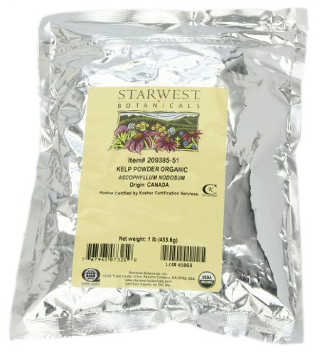 One pound of certified organic kelp power packaged in a polyfoil resealable bag.
