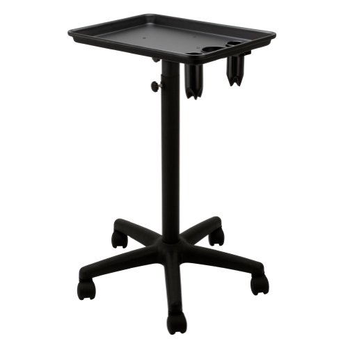 Rely on a workspace that's as versatile as you are. With and adjustable height stand, rolling body, and large span of tray space, this professional salon tray will accommodate your organization needs. Equipped with 2 appliance holders and one blow dryer hole within tray, five point roller feet, and a low center of gravity for dependable stability.