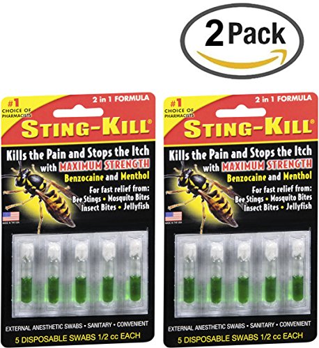 Sting-Kill is the #1 pharmacist recommended brand for the treatment of bee stings. Kills the pain and stops the itch from bee stings, mosquito bites, jellyfish stings, and any other insect bite. A must for outdoor sporting events, hiking, camping, or just bar-b-queuing in the backyard.