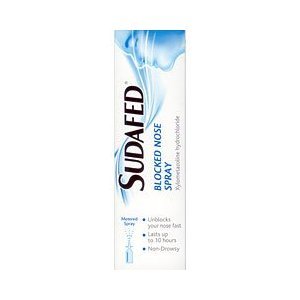 Sudafed blocked nose spray with xylometazoline hydrochloride works in minutes to help clear blocked noses and relieve sinus pressure caused by colds and hay fever. The metered spray gives an exact dose that lasts for up to 10 hours. Sudafed blocked nose spray with xylometazoline hydrochloride works in minutes to help clear blocked noses and relieve sinus pressure caused by colds and hay fever. The metered spray gives an exact dose that lasts for up to 10 hours.IngredientsThis Solution contains: Xylometazoline Hydrochloride 0.1% w/v Other Ingredients include: Benzalkonium Chloride Disodium Edetate Sodium Dihydrogen Phosphate Sodium Monohydrogen Phosphate Sodium Chloride Sorbitol Solution Purified Water See leaflet for further information and full directions.See all