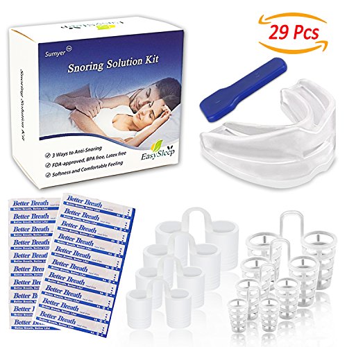 - WE ARE BETTER-- Sumyer all new designed anti snore kit was designed by 10 yrs experience Otolaryngologists, which included 10 quality Nasal Strips, 8 Advanced Nose Vents, and 1 Snore Stopper Mouthpiece. 3 ways to solving your lover's snoring problems. Better than other brands single kit.
