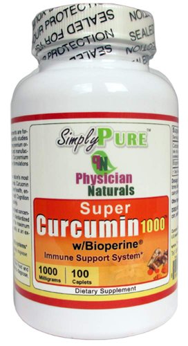 SimplyPure Super Curucmin supplement with Bioperine 1000mg - 100 caplets contains patented Curucmin C3 Complex extracted from premium organic turmeric. Highest concentrations of active ingredients Curcuminoids combined with Bioperine to dramatically improve absorption and bio-availability. Through its antioxidant mechanisms, Curcumin supports colon health and cardiovascular system and fights free radical cells.