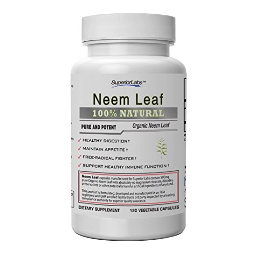 Our non-GMO Neem Leaf is packed with a safe to consume yet powerful dosage of pure Neem Leaf that helps maintain healthy appetite and digestion, fight free radicals, and improve immune system function.* Tablets are easy to swallow and safe to use. Each bottle contains 120 vegetable capsules. Superior Labs is dedicated to delivering superior customer service, which is why we offer a 60-day money-back guarantee on the purchase of our natural Neem Leaf vitamin supplements.