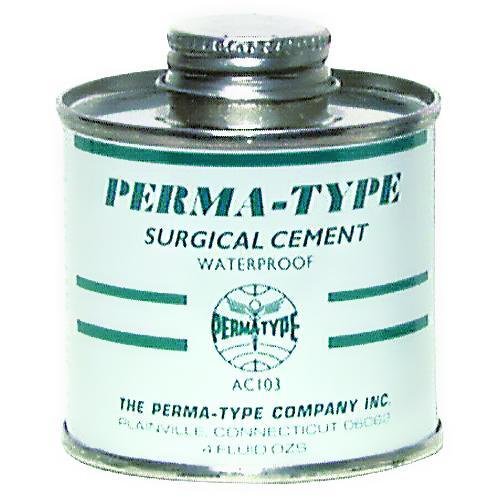 Perma-Type Surgical Cement that really works! This product contains latex and is flammable. Perma-Type has been manufactured for 60 years. Available in a 4 oz. can with brush-in-cap applicator.