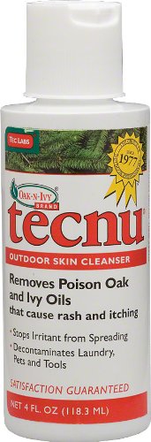 Size: 4 oz. Tecnu Poison Oak-N-Ivy Cleanser is 100% effective in removing the poison irritant of poison ivy, oak and sumac from skin and clothing. Prevents the rash by removing the poison before reaction starts. Don't forget to clean your tools! Active ingredients: deodorized Mineral Spirits, Water, Propylene Glycol, Octylphenoxy-Polyethoxyethanol, Mixed Fatty Acid Soap and Fragrance. Available in 4 oz., 12 oz. and 32 oz. sizes.