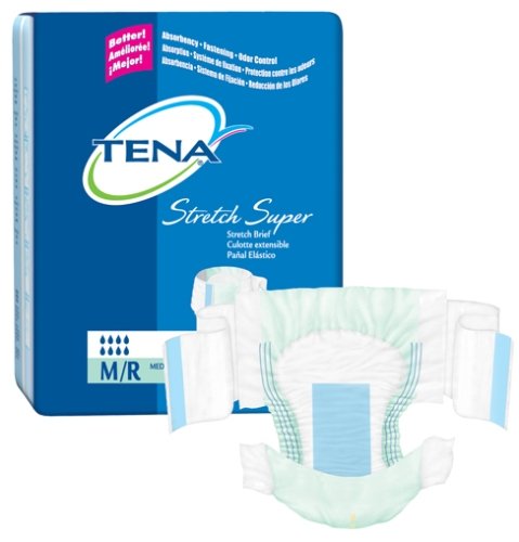 The Tena 67902 Super Stretch Briefs, medium/regular size, feature unique stretch sides that provide full breathability that promotes skin health and comfort. The customizable fit reduces product gapping and sagging for increased comfort, security, and effective leakage control. The unique Tena hook tab fasteners provide secure fastening anywhere on the brief and unlimited refastenability. The soft, nonwoven backsheet is gentle against the skin and less noisy, while the moisture-proof lining protects clothing and linen against wetness. The InstaDri Skin-Caring System improves surface dryness while Dry-fast Dual Core technology and strategic placement of superabsorbent polymers promote healthier skin. Curved elastics ensure a better fit and the wetness indicator alerts caregivers the brief has been soiled. The medium/regular size briefs fit waist/hip sizes 33 to 52 inches, are green in color, and come 28 to a pack.
