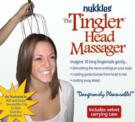 The Ultimate Head Massager - Few things in life feel as sensational as The Tingler. It gently massages pressure points and sensitive nerve endings on the head and neck. The Tingler has exceptional healing properties, eliminating stress and tension. It is made from copper which acts as a conductor tapping into your electrical fields. A lot of people say their headaches disappear! All we know for sure, is that it will make you very happy! Includes velvet carrying case