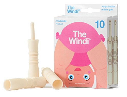 The Windi is another wonderful product from Sweden via FridaBaby (think NoseFrida, The Snotsucker ). A natural solution for colic, constipation, and other gas-related problems, The Windi works instantly and does not require ingestion of any drops or medication. The Windi is a single-use catheter that helps babies get rid of excess gas. Designed to be safe and effective, The Windi cannot harm your baby if used as instructed. Pediatric professionals are familiar with the method of using a rectal thermometer or tube to relieve gas, colic, and constipation. The Windi is designed specifically for this purpose. The soft, pliable, hollow tube features a rounded tip that is long enough to reach past the muscle that prevents the release of the gas, and also has a stopper to prevent an insertion too far. Each package contains 10 disposable Windis.