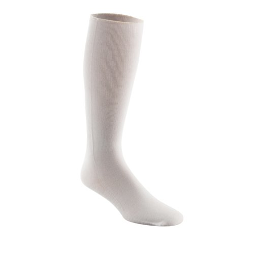 These seamless socks know no limit for comfort! Count on a remarkable fit that will conform to any size or shape leg. Corespun yarns deliver superior stretch and rebound, while the unique, non-restrictive, bandless halo top fits large or swollen legs without binding or sagging. White socks feature Coolmax polyester, the high-performance, four channel fiber that wicks away moisture and speeds drying time. Black X-Static and navy X-Static socks have X-Static silver fiber, a high-tech fiber with a layer of silver bonded to its surface that thermodynamically keeps feet cooler in the summer and warmer in the winter..
