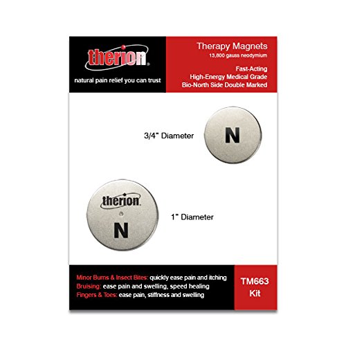 Therion neodymium magnets are 13,800 gauss high-energy, medical magnets. They are reusable, and guaranteed to maintain their energy for a lifetime. The bio-north side (negative) is marked to ensure proper use - this side must always face the body.