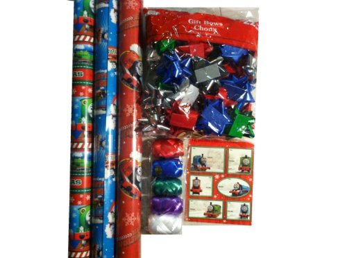 3 ROLLS OF THOMAS & FRIENDS, THOMAS THE TANK ENGINE GIFT WRAP. - 12 THOMAS & FRIENDS GIFT TAGS. 22 FUN COORDINATING BOWS 5 ROLLS OF RIBBON PERFECT GIFT WRAPPING SET FOR THE THOMAS FAN IN YOUR LIFE.