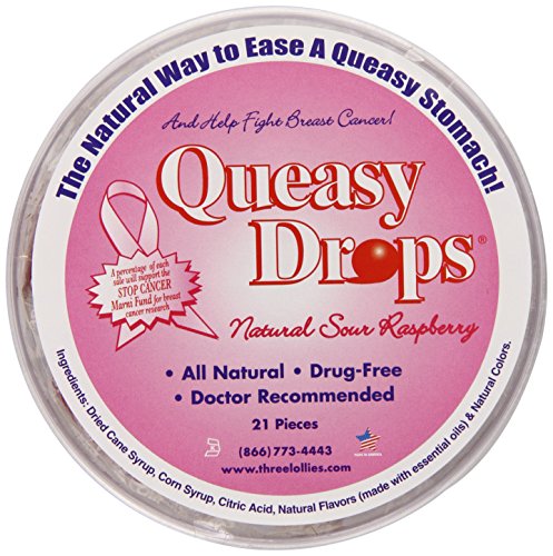 Say goodbye to your queasy and upset stomach while showing your support for breast cancer awareness. Effective for all types of nausea due to traveling, motion sickness, chemotherapy, illnesses, colds and flu, pregnancy, morning sickness, chemotherapy, car rides, airline travel, amusement park rides, dizziness, medications , even anesthesia or post-surgery. Made with powerful essential oils of fruit and plant botanicals that have been proven to relieve nausea. All-natural, completely drug-free and chemical-free so it's 100% safe for kids, adults, elderly persons and pregnant moms. Great tasting, fast-acting and highly effective at combating your nausea and upset stomach with absolutely no side effects. Zero artificial flavors or colors and certified kosher. Individually wrapped for convenience so they are perfect to take along in your purse, computer bag, pocket, backpack, luggage, briefcase, diaper bag, lunch bag or to always keep handy in the glove compartment of your car. Recommended by doctors and healthcare professionals. Three (3) containers of our nausea-relieving lozenges containing the essential oils of sour raspberry; 21 individually-wrapped lozenges per container. A portion of each sale of queasy drops pink goes to support the stop cancer marni fund for breast cancer research. See all three lollies products: preggie pops and drops for strong morning sickness relief; preggie drops plus with 10 milligrams vitamin b6 for extra-strong morning sickness relief; organic preggie pop drops made with USDA certified organic essential oils; queasy pops and drops for all-purpose nausea relief due to sickness, traveling, morning sickness, medications, even chemotherapy and post-anesthesia; queasy drops pink sour raspberry that supports breast cancer awareness and provides quick, strong nausea relief from chemotherapy, anesthesia or cancer medications; and our special line just for kids, queasy pops kids.