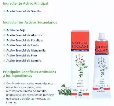 - Thyme, a tried and tested herbal remedy, soothes the respiratory tract and has antiseptic, antispasmodic and tonic. The Thyme cream is a high quality herb cream with a high proportion of thyme, camphor, eucalyptus and pine swamp. A good family classic and effective companion during the cold season. The active ingredients impart a sense of liberation and purification of the respiratory tract, while increasing a pleasant warm sensation on the skin and the overall well-being. Dermatologically tested.