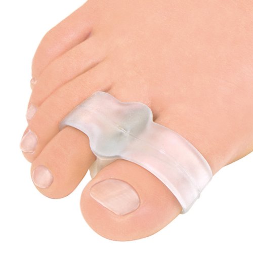 Gel toe spacer with stay-put loop Gently and comfortably separate big and second toes to help maintain proper alignment and prevent rubbing that can cause painful blisters and corns. Made with a soft, comforting gel that molds around the toes, the spacer provides all-day cushioning and protection. Reusable. 4"W x ½"W x 6"H.