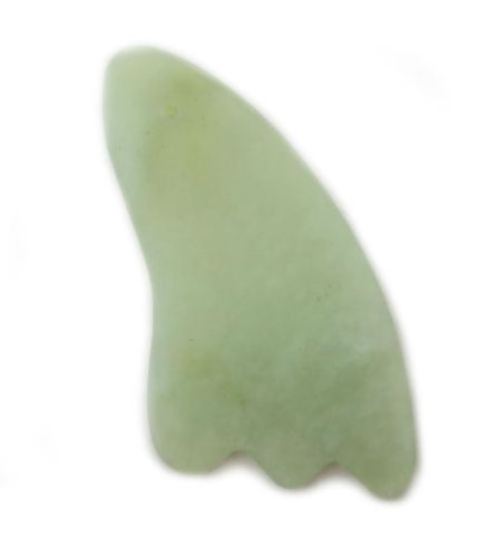 This Gua Sha tool is hand made from Chinese Jade. It features smooth and curved edges to use on smooth and curved areas of the body. The picture shows the shape of the tool. The shade and color of Jade will vary.