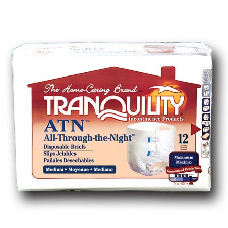 Tranquility ATN's have maximum capacity in a disposable brief. Users can sleep all through the night uninterrupted by garment changes without compromising skin safety. A patented Peach Mat Construction with superabsorbent polymers guarantees skin dryness, odor control, neutralization of urine and inhibition of bacterial growth. Reducing wet linens and extra laundry, ATN's provide a greater peace of mind for the caregiver and the user. Latex-free.