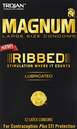 Trojan Magnum Ribbed Lubricated Condoms, 12 Count
