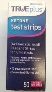 TRUEplus ketone test strips ideal for patients with diabetes and low-carb dieters. Acetoacetic Acid Reagent Strips for urinalysis are a fast and easy way to check for ketones in urine. 15 second test time. Convenient flip-top vial.