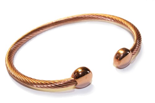 Twisted Copper and Stainless Wire Powerful 2 Magnet Magnetic Therapy Cuff Women's Bracelet 3000 - 4000 Gauss Each Magnet (Medium Large)