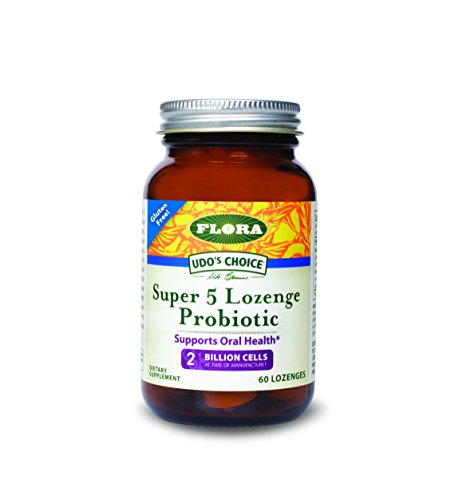 Udo’S Choice Super 5 Probiotic Lozenges Help To Support Healthy Gums, Teeth, Digestion, Good Breath, And Intestinal Flora.* They Should Be Dissolved Slowly In The Mouth After Eating To Maintain A Healthy Mouth And Microflora.* This Unique Combination Of 5 Friendly Bacteria With 1 Billion Viable Cells Per Lozenge (At Date Of Manufacture) Has A Delicious Raspberry Flavor That Makes It Easy For Both Children And Adults To Take. Udo’S Choice Super 5 Probiotic Lozenges Are Ideal For Travelers Or Those With Sensitive Digestive Systems. Unique Company Features: At Flora, We Have Been Manufacturing And Supplying Quality Herbal Remedies For Distribution In The United States Since 1988, But Our Roots Stretch Back To Germany In The Early 1900's, Where Dr. Otto Greither, Grandfather Of The Current Owner Thomas Greither, Dedicated His Life To The Discovery, Production And Distribution Of Natural Health Care Products. We Have Preserved His Original Dedication To Perfect European Herbal Remedies That Ensure Maximum Purity, Quality And Potency. Product Specifications: 60 Caps.
