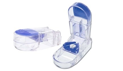 If you have swallowing problems or need to cut your pills and vitamins for dosage purposes then look no further - The Apex Ultra Pill Splitter is a new revolutionary pill splitter. It was designed with your safety in mind. With the Apex Ultra Pill Splitter you won't have to worry about cutting yourself. It features a self-retracting blade guard that protects against possible finger cuts. When the Apex Ultra Pill Splitter is open the blade guard completely covers the blade, protecting your fingers from possible injury. The blade guard will retracts when it closes. Another great feature of the Apex Ultra Pill Splitter is the pill grip. The pill grip is a non-slip rubber surface that keeps your pills in place when cutting. This provides greater accuracy when cutting. Size: 4" x 2" x 1.5" - 2 pack.