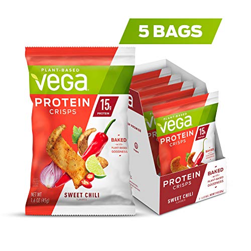 Get ready for your new favorite high protein snack: packed with 15g protein from peas and brown rice, Vega Protein crisps provide all the crisp and crunch that you love about chips.. All from real, plant-based food ingredients. Try Vega Protein crisps in two delicious flavors: sweet Chili and garlic & Herb.