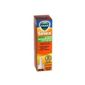 Vicks Sinex 12 Hour Decongestant Ultra Fine Mist Moisturizing nasal spray provides temporary relief-up to 12 hours-for nasal congestion due to colds, hay fever, and upper respiratory allergies. Temporarily relieves nasal congestion due to colds, hay fever or upper respiratory allergies. Relieves sinus pressure and shrinks swollen nasal membranes so you can breathe more freely Vicks Sinex 12 Hour contains an effective decongestant for fast, long lasting relief of nasal stuffiness.