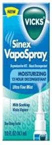 Vicks Sinex VapoSpray Moisturizing 12-Hour Decongestant UltraFine Mist provides temporary relief—up to 12 hours—for nasal congestion due to colds, hay fever, and upper respiratory allergies.