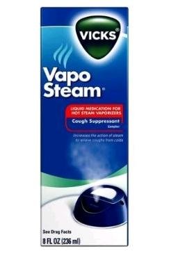 Vicks VapoSteam, when added to your Vicks Vaporizer or other hot or warm steam vaporizer, increases the action of steam to moisten dry, irritated breathing passages and temporarily relieve coughs due to minor throat and bronchial irritation associated with a cold.