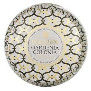 Voluspa Maison Gardenia Colonia 2 Wick Candle Tin. Made with Natural Apricot & Coconut wax. Hand poured Luxury candle.