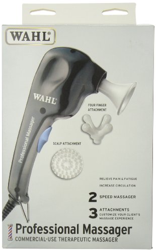 The Wahl Professional Massager is a hand-held commercial-use therapeutic massager. Hand held professional massager Three therapy attachments Ergonomic design.