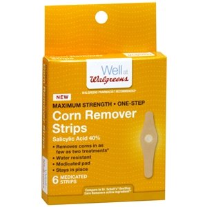 Maximum Strength One-step strips remove corns in as few as two treatments.* For the removal of corns 5 Relieves pain by removing corns Water resistant 2 Medicated pad 3 Stays in place