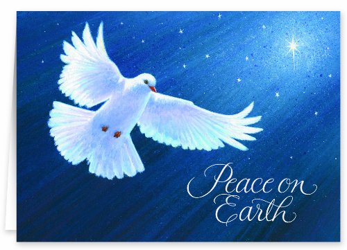 Glossy card stock single folds to 7x5"; white envelopes included. Set of 20. Inside: "Glory to God in the highest...peace, goodwill toward men." - Luke 2:14. Wishing you the blessing of peace at Christmastime and throughout the coming year.