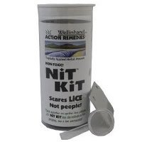 wellinhand ACTION REMEDIES Topically Applied Herbal Answers NON-TOXIC Nit Kit SCARES LICE NOT PEOPLE! 100% Natural Formula, 5x Magnifier, Metal Medi-comb, Free Product Sample 2 fl. oz. (60mL) Gluten-Free! NATURAL NiT KiT Non-Toxic NiT KiT the happy alternative to dangerous pesticides on your kids' heads! Easy to use. Smells great. Leaves hair gorgeous. Just one louse in your house is cause for high stress. NiT KiT saves the day. Congratulations on your choice to use Non-Toxic NiT KiT near your child's cerebral fluid. Would you use dangerous pesticides Show head lice who is boss! you didn't have to?
