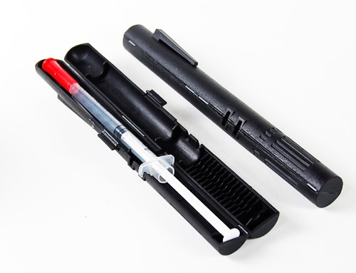 A Convienient way to transport a prefilled insulin syringe The Wright Prefilled Syringe Case makes transportation of prefilled syringes as simple as carrying a fountain pen. Designed to fit in a pocket or purse, the Wright Prefilled Syringe case holds most E-Z JECT, B-D, PharmaPlast and TERUMO syringes (not compatible with Monoject syringes). The interior is designed to safely hold the syringe plunger in "your" preset position with the approximate dosage. Constructed of impact resistant polypropylene, the kit comes with two black cases