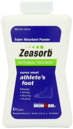 Dermatologist Recommended. Super Absorbent. Zeasorb Antifungal Powder. Miconazole Nitrate 2%. Cures most Athlete's Foot, Jock Itch, Ringworm. Relieves itching, burning, and scaling. Absorbs moisture. Soothes chafing. Contains no starch. Product settles during shipment. Package contains full net weight. Report serious side effects to 1-877-257-5768. Distributed by Stiefel Laboratories, Inc. 255 Alhambra Circle, FL 33134-7412 USA. Made in U.S.A. www.stiefelchc.com.