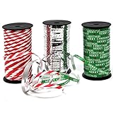 Christmas Curling Ribbon Pack of 3 Rolls Green, Red ...