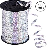 500 Yards Silver Crimped Curling Ribbon Shiny Metallic Balloon ...