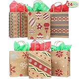 24 Christmas Kraft Gift Bags with Assorted Christmas Prints ...