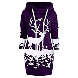 Coupondeal Womens Christmas Monochrome Reindeer Printed Hooded Drawstring Mini ...