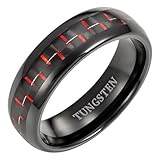 New Mens 7mm Black Ring With Red Carbon Fiber ...