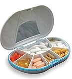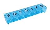 7 Day Pill Box Organizer 2 Compartment Blue Tray- ...