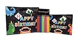 Happy Birthday Monsters Gift Bag Set with Tissue Paper